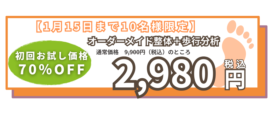 この状態が続くと、足底筋膜炎をはじめとする足裏の慢性痛や歩行時の違和感につながることがあります。